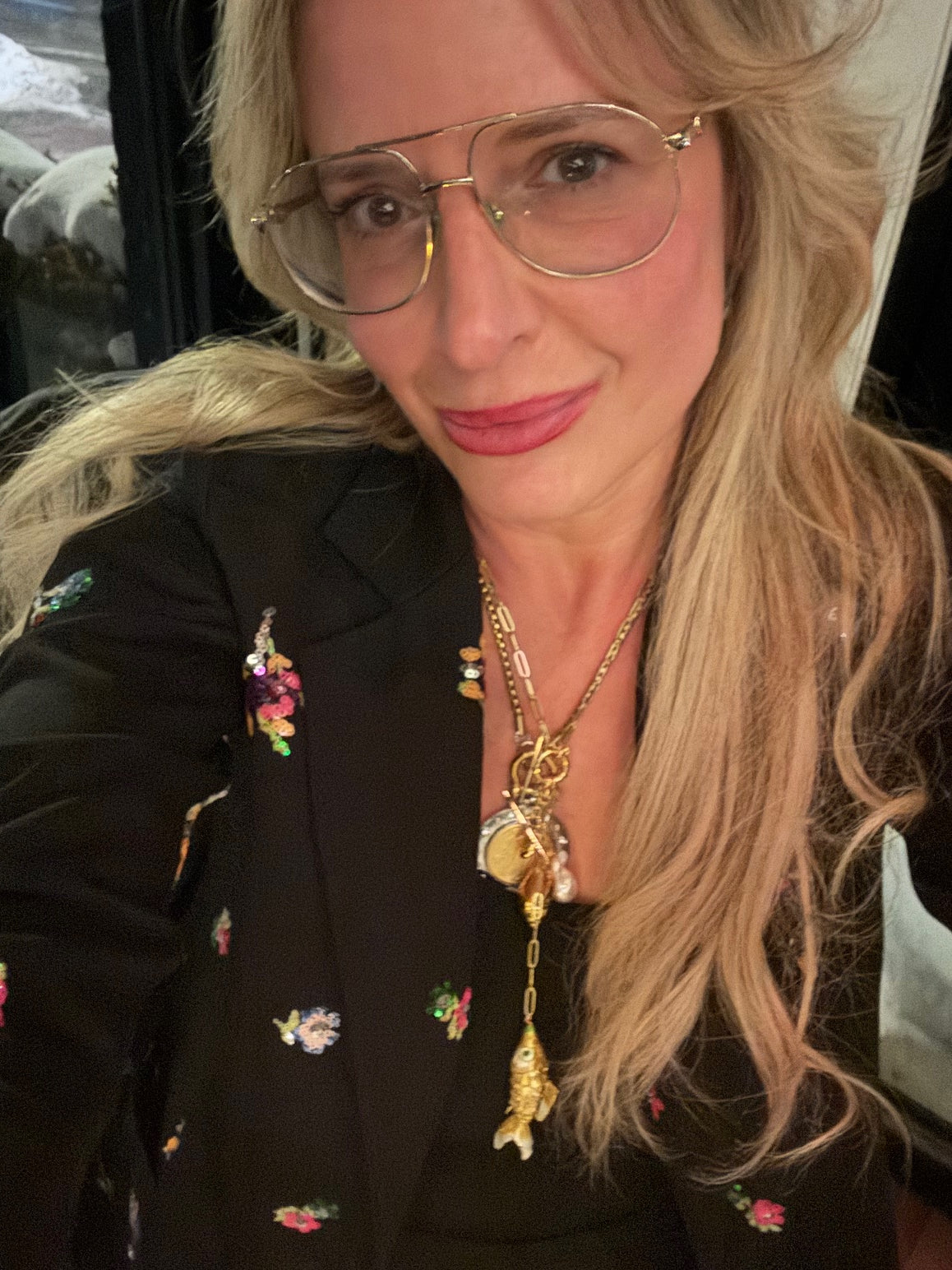 Yellow Koi & Conch Charm Lariat Necklace
